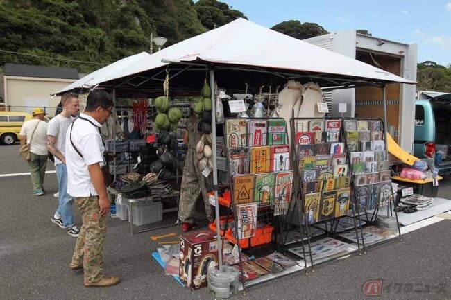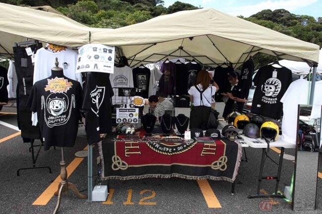 くわえてSCMPは広く雑貨やウェアを扱う『アメリカン・カルチャー』にジャンルが広がっているゆえ、多くのショップがウェアや小物、ヘルメットなどを販売していたのですが、それもほとんどがイベント特価。家族連れでも楽しい雰囲気が人気の秘訣かもしれません。