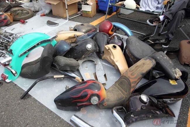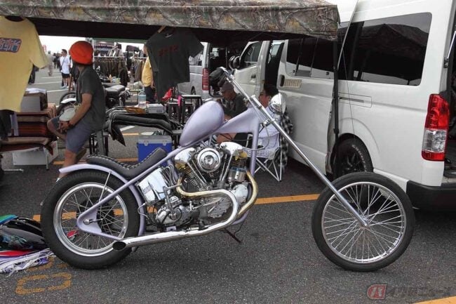 アメリカのカスタムカルチャーである『チョッパー』や『ホットロッド』の世界では、このSCMPのようなスワップミート(部品交換会)でユーザーが中古のパーツを買い求め、それを各々がガレージで組み込み……というノリでカスタム・バイクやカスタム・カーが製作され、ひとつの根幹ともなっているのですが、今では日本でもこうしたスワップミートが各地で開催されています。まさにこうしたイベントはカルチャーの裾野を広げるものです。