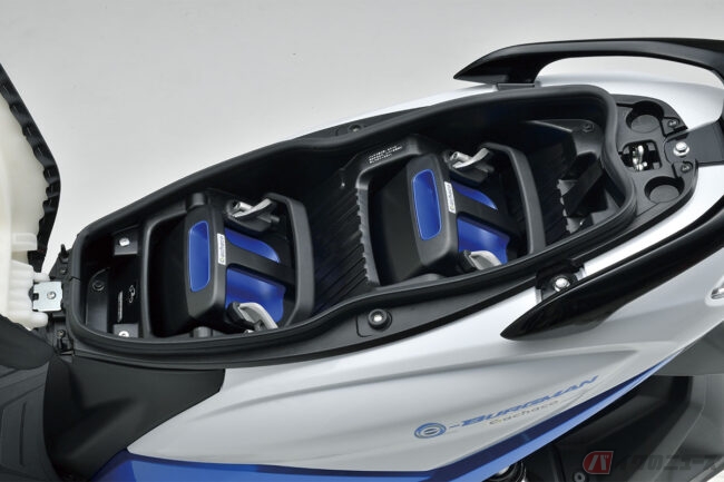 バッテリーシェアリングサービスを利用した実証実験実施中!スズキがJAPAN MOBILITY SHOW2023に「e-BURGMAN」を参考出品