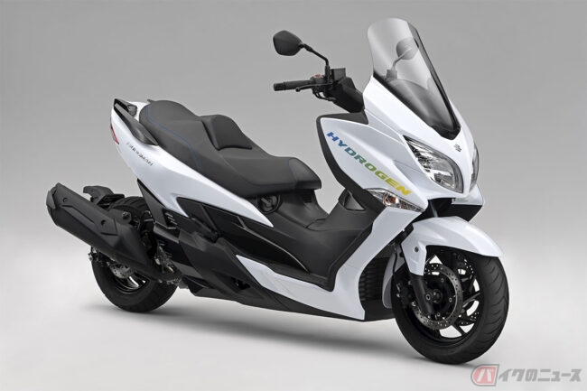 スズキが、2023年10月26日から11月5日まで、東京ビッグサイトで開催されるJAPAN MOBILITY SHOW2023に、二輪技術展示予定の「水素エンジンバーグマン試験車両」を公開しました。