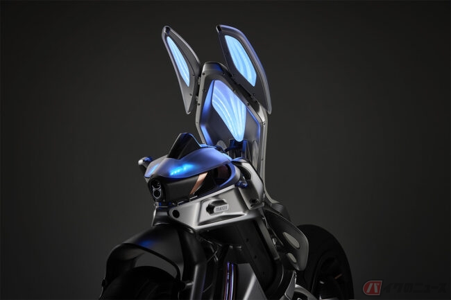 MOTOROiDと同じく、オーナーを認識して起き上がり、伴走し、その背に乗せて走行する生き物のような生命感と、「人生の伴侶」のような存在感をもつパーソナルモビリティです。自らをセンシングして不倒状態を保つバランス制御「AMCES」や、オーナーの意思をくみ取りながら状態を判断する「画像認識AI」の深化、さらにこれまでの二輪車には存在しなかった新たなストラクチャー“LEAF”を身にまとうなど、人とマシンの呼応に特化したスタイリングが特徴となっています。