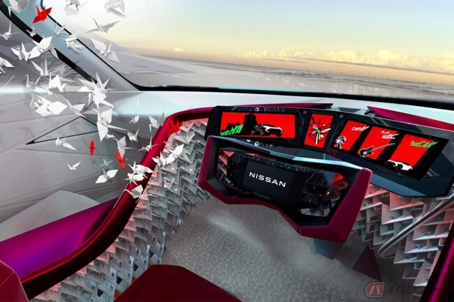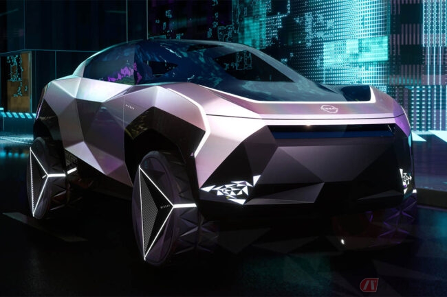 立体的で多角形を強調したエクステリアデザインは、クルマとデジタルの融合を表現。空力性能に優れたデザインやミニマルなデザインからは逆行するような、力強さを感じさせるスタイルには、これまでの常識にとらわれることなく、他者とは異なる自己表現をしたいというオーナーのマインドと、新しい技術やデザインにチャレンジする日産のマインドが表されています。