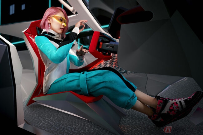 例えば、車載カメラが撮影したクルマ周辺の景色の映像を、AIがオーナーの好みに応じて日本文化の象徴である漫画調の景色や様々なグラフィックパターンの景色に変換し、コックピットにドライバーを囲むように配置された3面ディスプレイに映し出すなど、現実とメタバースの世界が融合した空間を楽しむことができます。