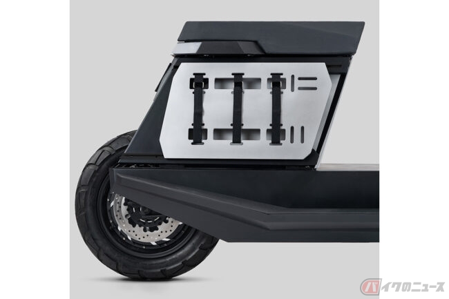 そのほか、P1ではシート下のサイドカバーを外し、アタッチメントを介することでバッグや追加バッテリー、バッテリー式スピーカーなどを取り付けることができるもジュラープラットフォームも採用されています。