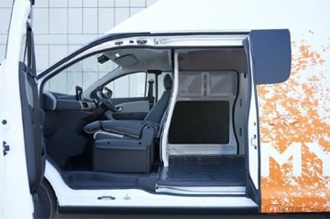 さらに、運転席/助手席と荷物室を完全に隔離できる引き戸式のパーティション、長尺物でも側面から積み降ろしが可能な助手席側Bピラーレス構造と大開口スライドドア、ワンタッチで作業机に変身する助手席などで、物流現場の様々なニーズに対応。