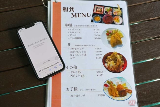 まずはメニューを、と思ったら店の方が持ってきてたのはバーコードの印刷された紙。これをスマホで読み込んでオーダーするシステムです。もちろん印刷されたメニューも用意されています。