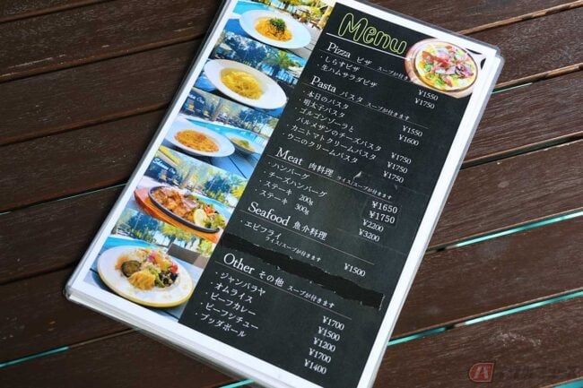 メニューは和食と洋食に分かれていて、和食には「アジフライ御膳」、「天ぷら御膳」、「三崎まぐろ丼」や「釜揚げしらす丼」など、海鮮を使ったメニューが並んでいます。洋食の方はピザ、パスタ、ステーキ、ハンバーグなど。アジとカキのフライは和食ですが、エビフライは洋食に分類されています。そんな中でこれはなんだろう? と思った「ブッダボール」ですが、訊いてみるとベジタリアンメニューとのことでした。今回は迷うこともなく「アジフライ御膳」をオーダーする筆者です。