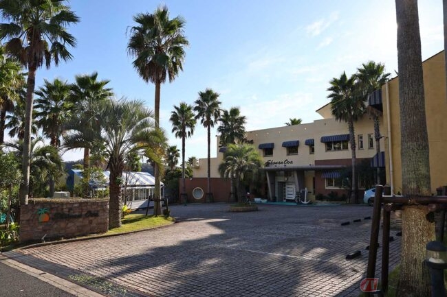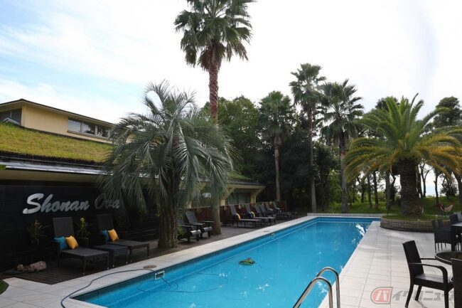 登り切ったところで「湘南国際村センター入口」のT字路交差点を直進し、道が下り始めたあたりの右側にある施設が、今回の目的地「湘南OVA(オーヴァ)」です。山と海に囲まれたリゾートホテルといった雰囲気で、宿泊施設だけでなく、三浦野菜など地元食材にこだわったレストランも併設しています。
