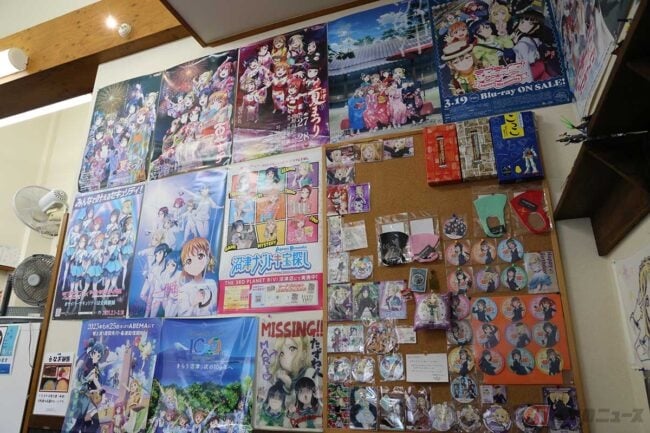 店内を見回すと、アニメのポスターやグッズが多いです。女性スタッフに訊いてみると「ラブライブ・サンシャイン」という沼津を舞台にしたアニメだそうです。