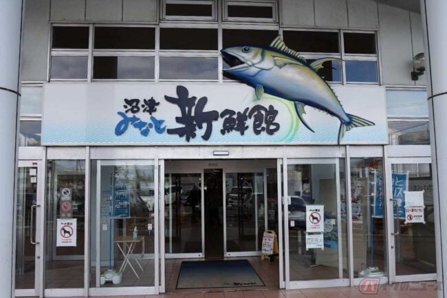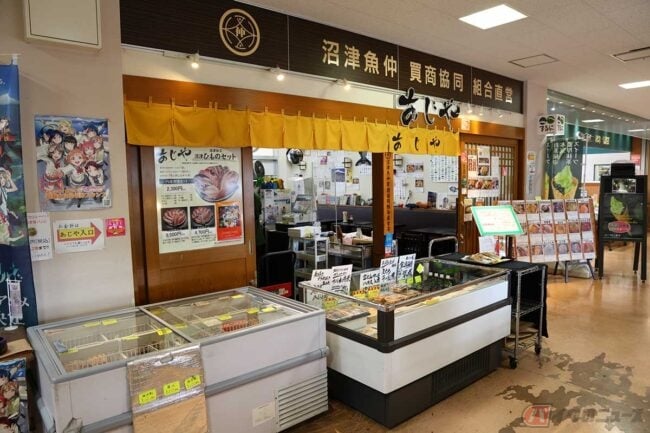 沼津港入り口にある「沼津みなと新鮮館」という施設が目につきました。どんな店があるのか案内図を見ると、ド直球な店名の「あじや」を発見しました。これはきっと美味しいアジフライが食べられるに違いない! と「沼津みなと新鮮館」に潜入します。