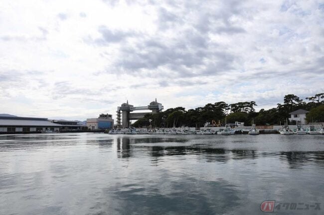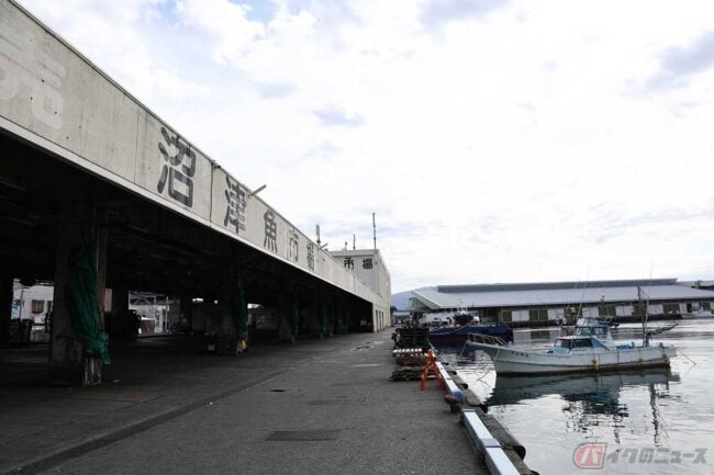 美味しいアジフライを求めて、筆者(増井貴光)が愛車のホンダ「XR250」で箱根峠を越えて到着したのは、静岡県の沼津港です。美味しそうな海鮮の店が所狭しと軒を連ねていて、どこに入ろうか悩みます。
