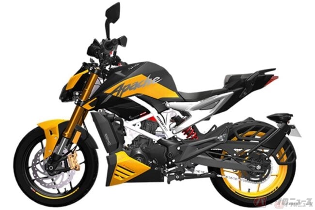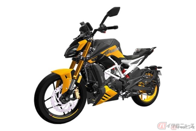 BMW Motorrad「G310」シリーズを生産することでも知られるTVSのApache RTR 310は、最高出力35馬力、最大トルク28.7Nmを発揮する排気量312.12ccの単気筒エンジンを搭載するストリートファイタースタイルのネイキッドモデルで、長距離走行用のクルーズコントロール、5つのライディングモードなど、充実した装備が特徴となっています。