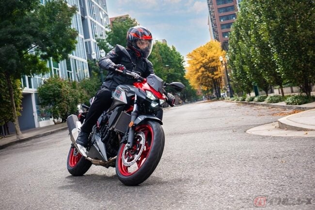 軽量なトレリスタイプのシャシーを採用することで軽快なコーナリングを実現するZ500は、ビギナーからベテランライダーまで幅広く対応するモデルで、独自のカラーリングに加え、アンダーカウル、カラーTFTメーター、カワサキ・ライドロジーの最新版アプリでライダーのスマートフォンやUSB-Cコンセントから情報にアクセスできる機能を追加した特別仕様車も用意。