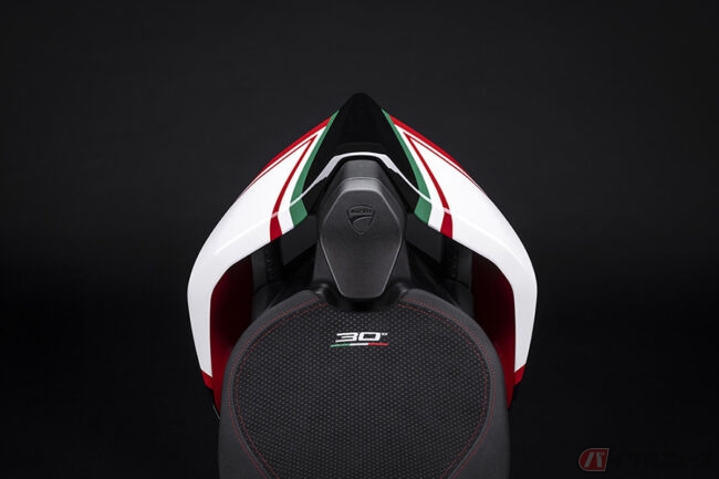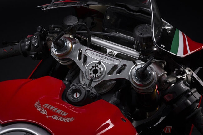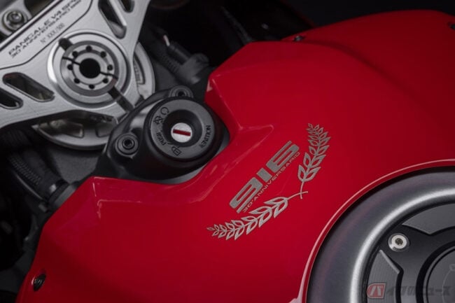 なお、Panigale V4 SP2 30° Anniversario 916ではモデル名とプログレッシブ・ナンバーがレーザー刻印されたビレット・アルミ製ステアリング・プレートも備えられており、シングルシート仕様のみを設定。認定証と専用バイクカバーも付属します。