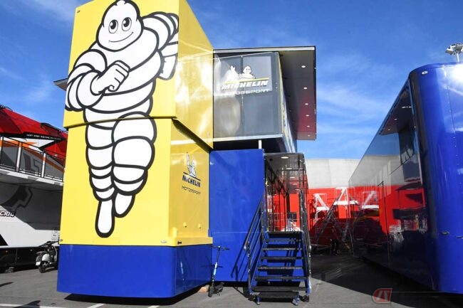 パドックにあるのはチームのトレーラーばかりではなく、サプライヤーのトレーラーもあります。どこに行っても巨大なトレーラーがひしめいているのです。ミシュランのトレーラーは中がホスピタリティになっています。わたし(筆者:伊藤英里)がピエロ・タラマッソさん(ミシュラン モータースポーツ二輪マネージャー)インタビュー取材のために訪れたとき、「コーヒー、飲む?」とおもてなししてもらったことも。そう言えば、日本でも同じですが、ビジネスの場で出してもらう飲み物といったらコーヒー。これは世界共通の文化(?)なのでしょうか……。