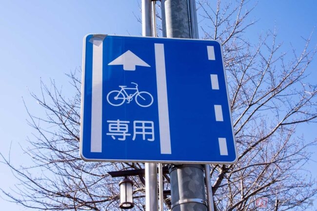 その名の通り、普通自転車の専用通行帯を示します。車道の中で、自転車が通行するよう指定された部分です。