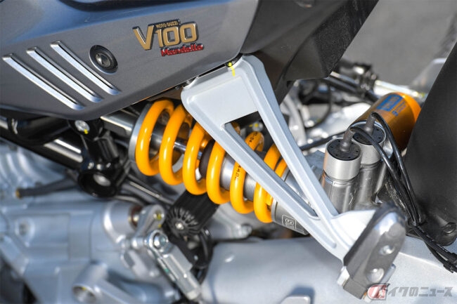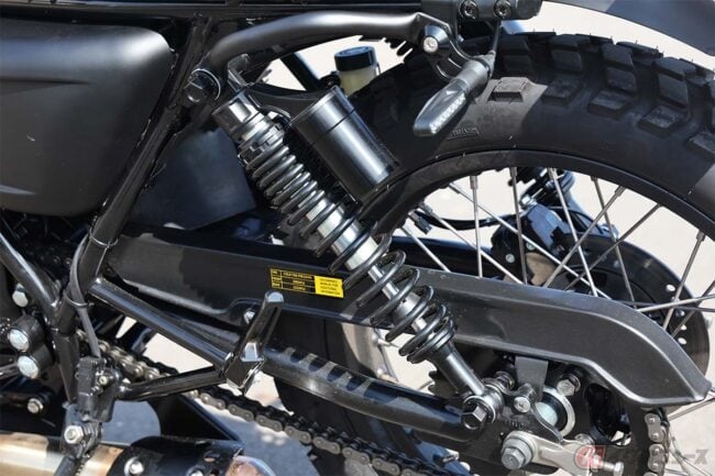 スプリングとショックアブソーバーを組み合わせるサスペンションの形式はクルマも同様で、スタンダードな形式と言って良いでしょう。