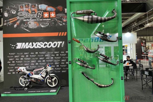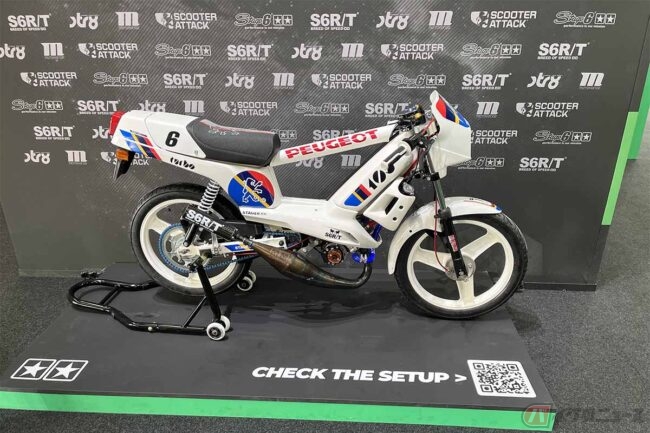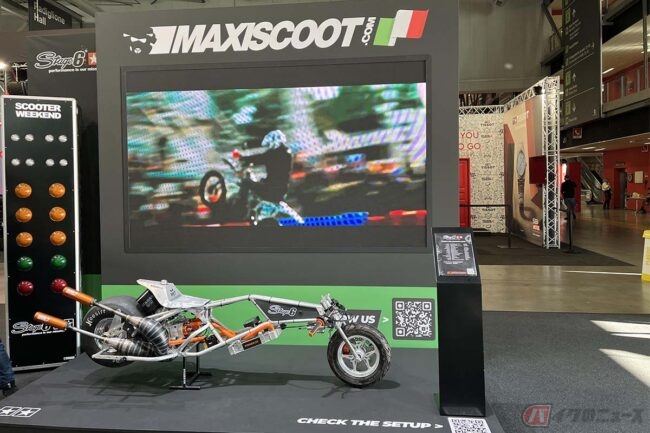 オリジナルスクーターチャンバーやドラックレースで使用していたと思われるバイクも展示してありました。スクーターではありますが、見た目が普通のバイクのような形をしたものもあり、なかなか面白いブースとなっていました。