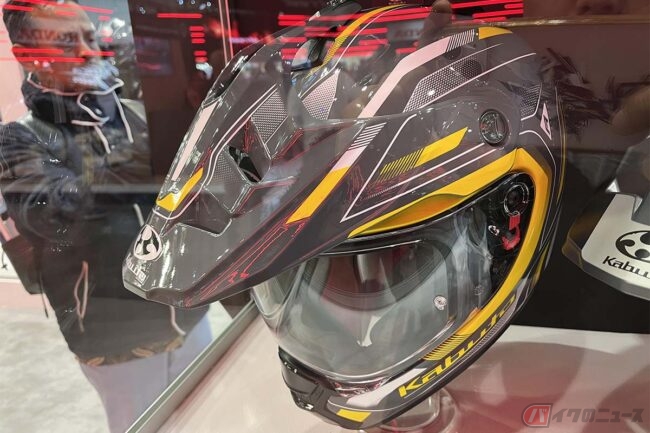 こちらはオージーケーカブトが新しく開発した新型オフロードヘルメットで、オフロードヘルメットながらスクリーン仕様となっているため、ツーリングや林道走行でその機能を発揮してくれそうなデザインとなっています。