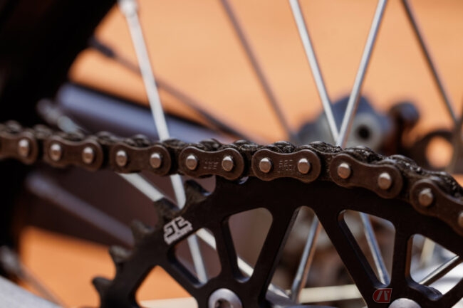 オプションのMXチューンPROアプリを使用することで高度なエンジン管理と調整が可能なTF 250-Xでは、KYB製サスペンションや48mm AOSフォーク、鍛造・削り出し7075-T6アルミニウム製トリプルクランプ、3ウェイピギーバックコイルリアショックなど、クラストップレベルの足回りを採用。