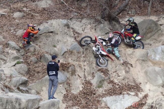 このバイク、トルクはあるけどモトクロスコースとかでは上も回らないし、4速しかないから少し不便だなと思っていましたが、ハードエンデューロ的な難しいコースで乗ると、このエンジン特性がとてもマッチして、いけない場所はないんじゃないか?って思ってしまう程の実力にビックリ。
