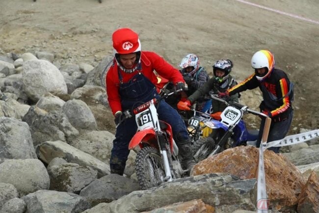 実際に乗ったインプレは、まあ乗ってみてのお楽しみという事にしておいて欲しいのですが、このミニモトハードと言われる競技は普段モトクロスやロードレースをやっている人も誘いやすく、先日一緒に乗った全日本モトクロス最高峰クラスでランキング2位の大倉由揮選手も「このバイク、こんなトルクがあるなんて、知らなかったです!」と、驚いていました。