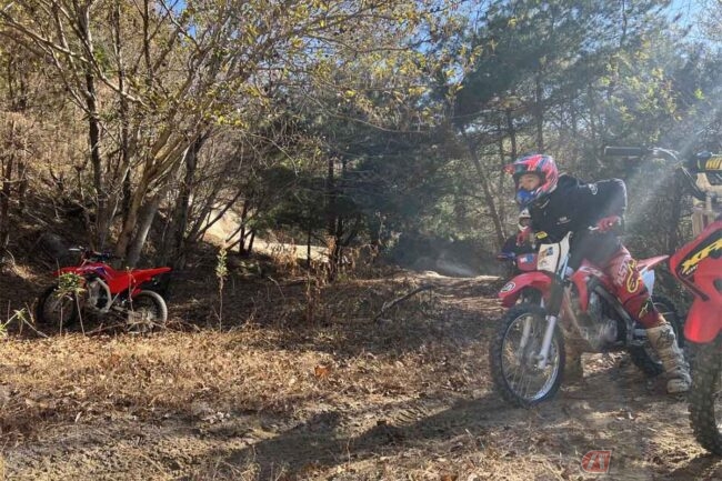 フルサイズと言われる2サイクル300ccのバイクにも乗っていましたが、パワーがあり過ぎるし足つきは悪いし重いし、でもCRF125Fならそう言ったネガな部分がなく、「これは人気が出るわ」と、僕でさえ思ってしまったのです。