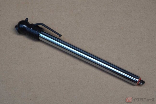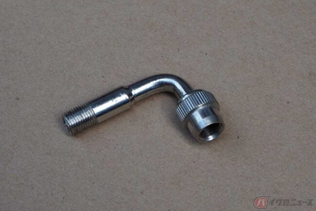 ちなみに、ガソリンスタンドの空気入れ(空気圧も測れる)は基本的にクルマ(4輪車)用なので、形状的にバイクだと使いにくい場合が少なくありません。とくに前輪がダブルディスクだと、どうにも使えない場合があります。