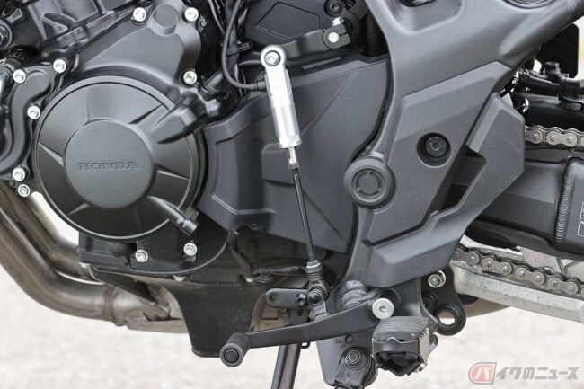 ギアチェンジするにはアクセル(スロットル)を戻し、クラッチを切り、シフトペダルの操作が必要になりますが、「クイックシフター」を装備していれば“シフトペダルの操作のみ”でギアチェンジが可能になります(走行中のギアチェンジのみ。発進時や停止時はアクセルやクラッチの操作が必要)。