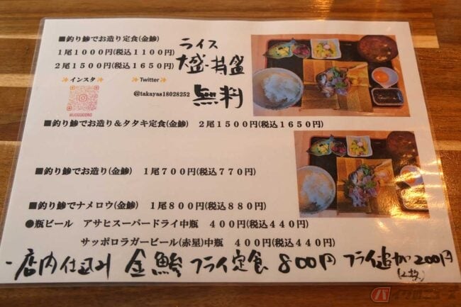 住宅街の小さな食堂、店主が釣った金鯵メニューが魅力的