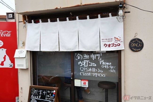 アジと言えばアジフライ! というライダーのために、美味しいアジフライを味わえる店を紹介します。店主が釣り上げた金鯵を提供する『ウオゴコロ』を訪れました。