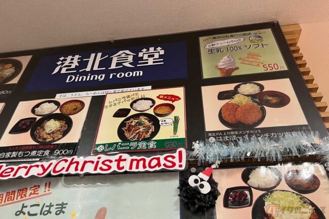 東名高速「港北PA」(下り)のフードコートには、「横濱うまいもん亭」や「港北麺道場」などがあり、美味しさやボリュームの多さで好評を得ていますが、上り線側の「港北食堂」(営業時間:6時~22時)も負けていません。