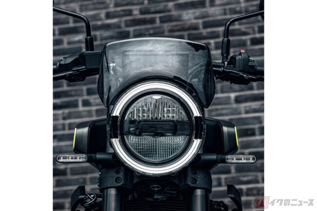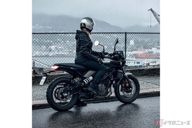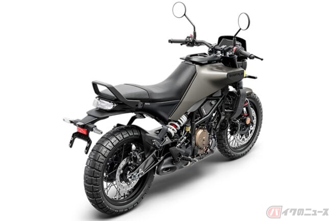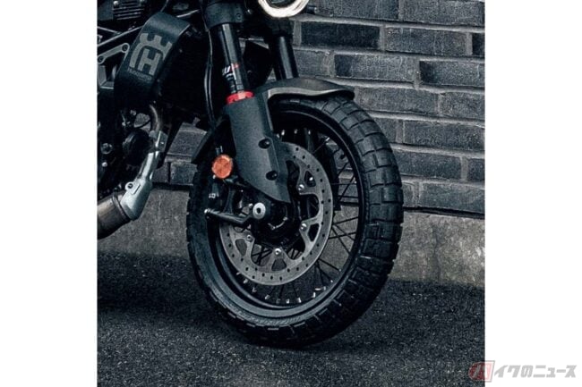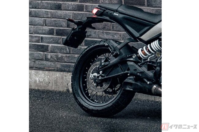 共通性のある外装デザインながら、小ぶりなメーターバイザーやワイヤースポークホイール、ブロックタイヤ、ヴィットピレンと形状の異なるフロントフェンダーなどの採用により差別化が図られています。