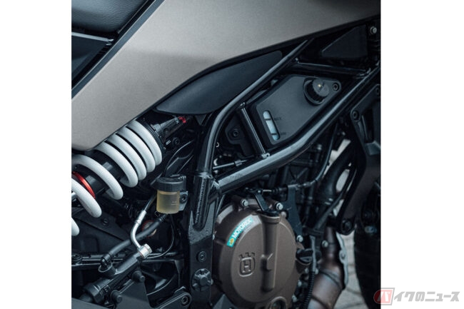 ヴィットピレン 125の兄弟車となるスヴァルトピレン125では、ヴィットピレンよりもアップライトなポジションを構築するハンドルバーや新型エンジン、トレリスフレームなどで車体を構成。