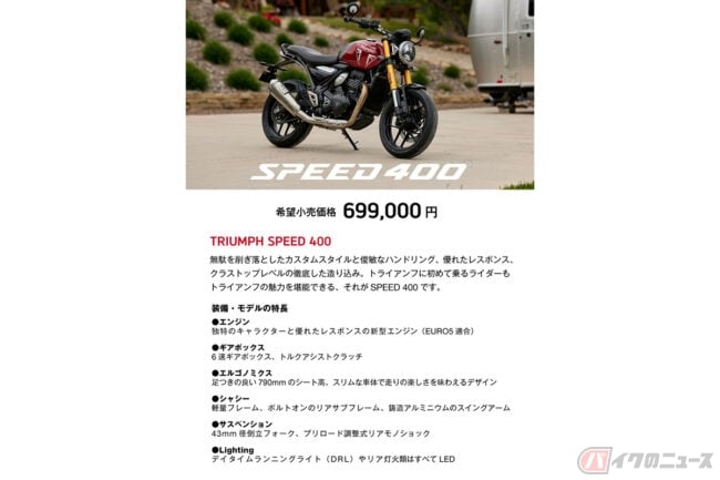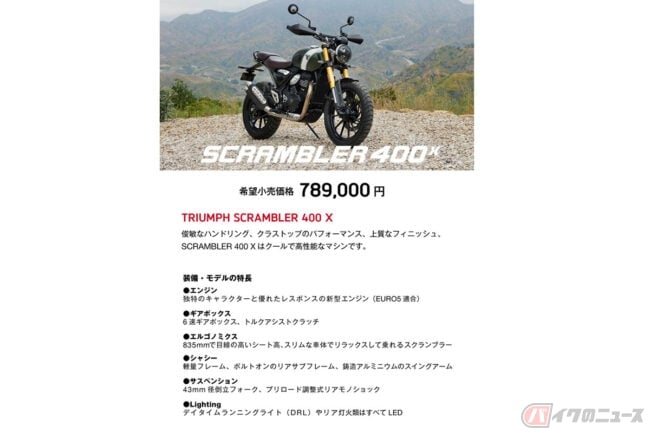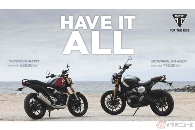 トライアンフモーターサイクルズジャパは、2024年1月26日に新型モデル「SPEED 400(スピード400)」「SCRAMBLER 400 X(スクランブラー400X)」を発売しました。