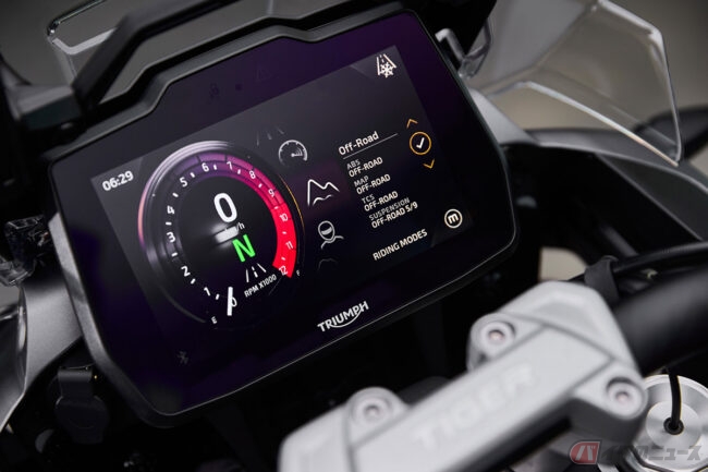 また、タイガー1200の全モデルには、時速65km/h以下でリアサスペンションのプリロードを低減し、停止するとライダーとパッセンジャーの体重、および積載物の重さに合わせて停車時にシート高が最大20mm下がるアクティブ プリロード リダクション機能も搭載。