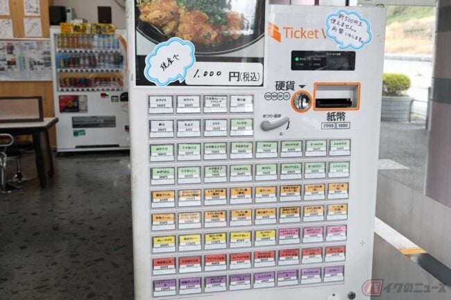 店内の券売機で食券を購入し、カウンターで渡せばオーダー完了。シンプルに「アジフライ定食」を選びましたが、ほかにも「アジフライと鶏唐揚げ定食」や「アジフライとメンチカツ定食」、「鮭フライとアジフライ定食」もあります。