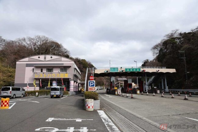 この逗葉新道の料金所を葉山側に出ると、右側に「レストハウス逗葉」と広い駐車場、それにトイレがあります。たった2kmの有料道路にレストハウスがあるのは、全国でも珍しいのではないでしょうか。