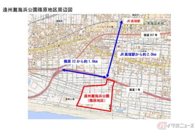 「遠州灘海浜公園内に予定される球場の整備に合わせて、賑わい創出や沿線道路の混雑緩和の観点ということで、浜松市が半径2km内を目安に候補地を考えています」(浜松市企画調整部企画課)
