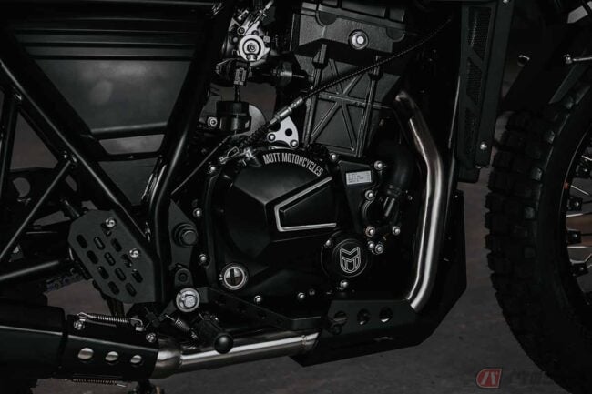 これまでのモデルではクラシックなスタイルを基軸にしてきたMUTT Motorcyclesですが、新型モデルとなるDRK-01では、新開発のDOHC水冷エンジンと6速マニュアルトランスミッションを採用することで走行性能と信頼性を向上。