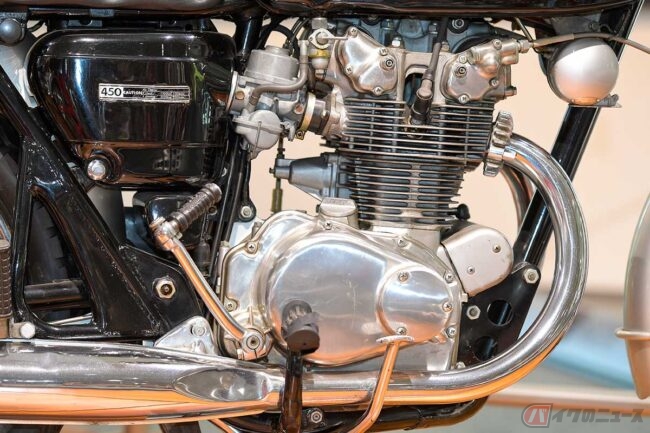 最高出力は43psを8500rpmで発揮し、最高速は180km/h、0-400mは13.9秒という高性能を宣伝文句に、「ドリームCB450」は好調な販売台数を記録しました。