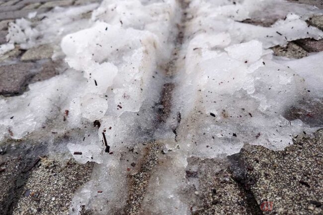 そしてさらに怖いのが、溶けた雪が再び冷やされて路面が凍結する、いわゆる「アイスバーン」です。クルマやバイクのような重たい乗りものでも滑ってしまうような状況なので、自転車などはビックリするぐらいあっけなく、すてんと転びます。