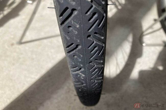 とはいえ、どうしても自転車に乗らなければいけないということもあるでしょう。その際、少しでも転倒のリスクを下げるために重要になってくるのが「タイヤの状態」です。もちろん転倒しなくなるということではありませんが、表面が削れてツルツルのタイヤより、トレッドパターンと呼ばれる溝がしっかりと残っているタイヤの方が、いくらかマシです。