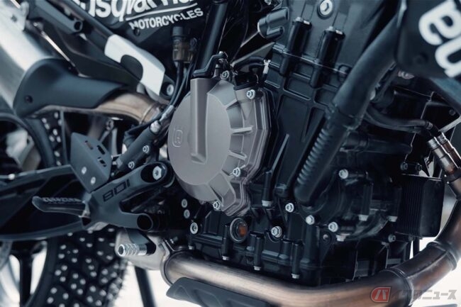 ハスクバーナの「ピレン」シリーズ最新モデルにして最大排気量となるスヴァルトピレン801は、最高出力105psのコンパクトなパラレルツインエンジンを搭載するネイキッドモデルです。