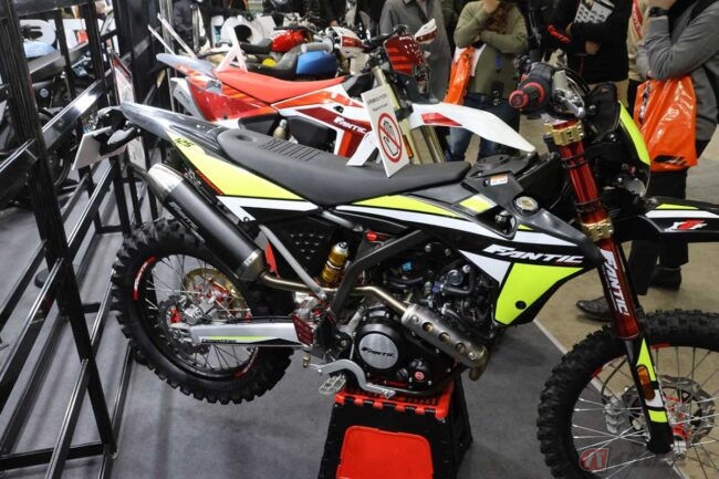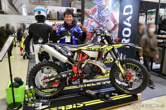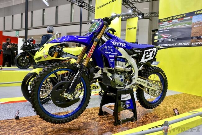 競技専用モデルに関しては、ヤマハやホンダ、KTMなどオフロード競技用モデルを開発・市販しているメーカーブースにはもちろんのこと、タイヤやオイル、用品などのブースにもオフロードバイクが展示されていることが多いです。