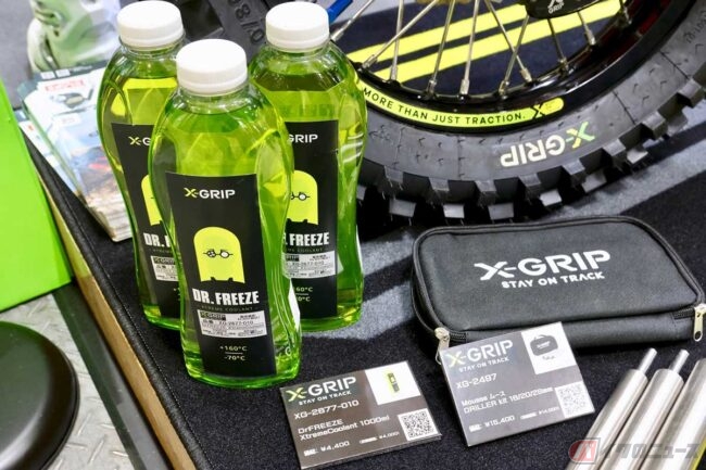 ウエアやツーリングアイテム、キャンプグッズのイメージが強い同社では、今までオフロード向けの展示はありませんでしたが、今年は初めて、イタリアの老舗オフロード用品ブランド「アチェルビス」や、近年人気が高まっている「X-GRIP」など、オフロードだけの一角が設けられていたのです。