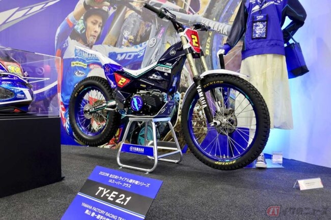 ほかにも全日本エンデューロ選手権のチャンピオンモデル、大阪で初開催された『FIM E-EXPLORE』にも参戦したホンダ(HRC)の「CR ELECTRIC PROTO」、ヤマハが全日本トライアル選手権に参戦中の電動トライアルマシン「TYE-2.1」(旧モデル)も展示されていました。