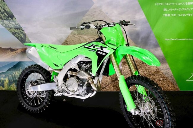 カワサキモータースジャパンのブースでは、国内でも発売予定の新型トレールモデル「KLX230S」を、昨年開催されたジャパンモビリティショーに引き続き展示されていました。