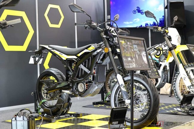 『SUR-RON(サーロン)』社製の電動オフロードバイクを取り扱うコハクジャパンは、『第51回 東京モーターサイクルショー』(2024年3月22日~24日開催)にブース出展し、モタード仕様にモディファイされた車両を展示しました。