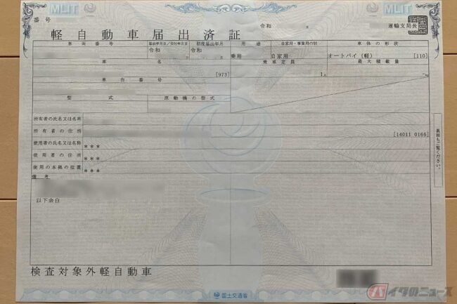 登録書類的なモノではありますが、この「標識交付証明書」は税務上の書類となるため、じつは携帯の法的義務はありません。ただし交通事故や違反時に提示を求められるケースもあるので、携帯した方が安心です(コピーでも可)。